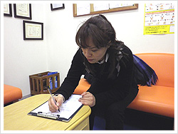 お電話にて予約していただいた日時に来院していただき、問診表に記入してもらいます。