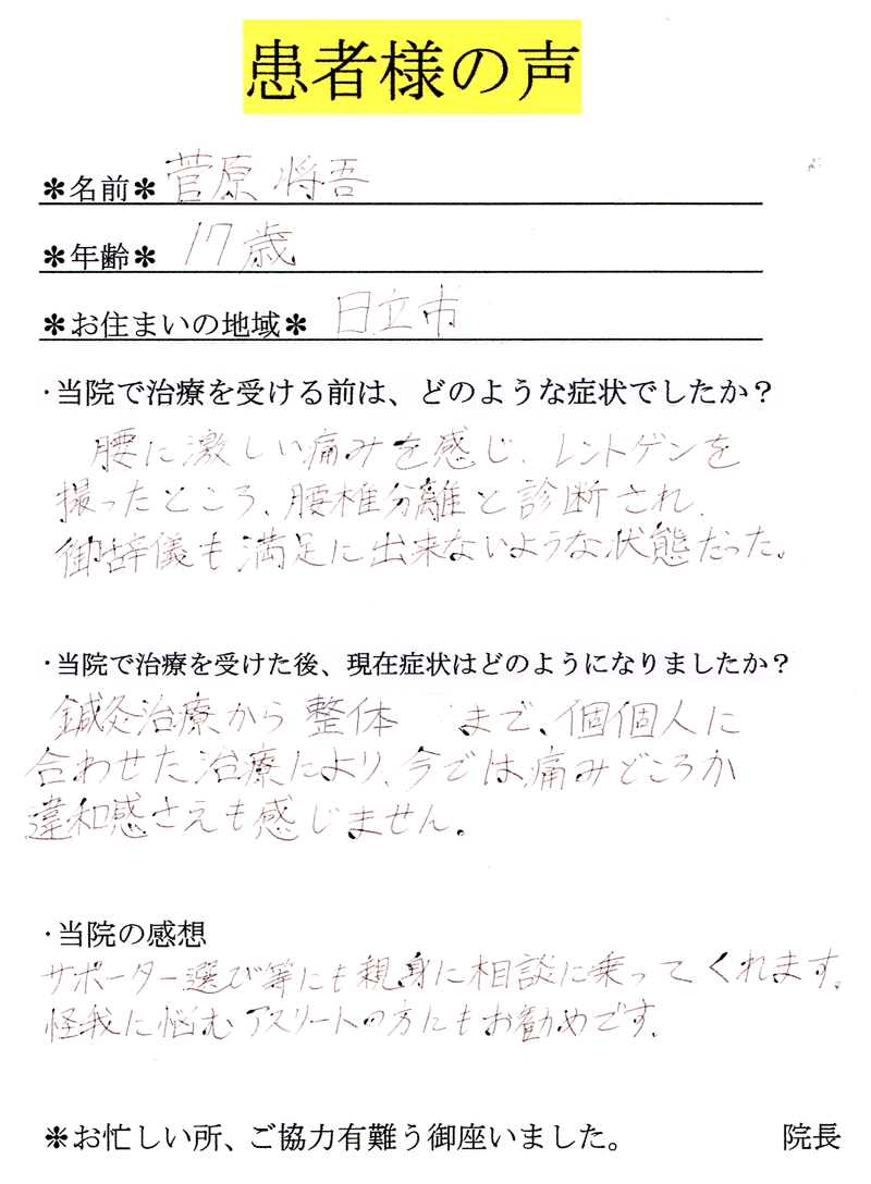 【氏名】菅原様【年齢】17歳【お住まい】日立市