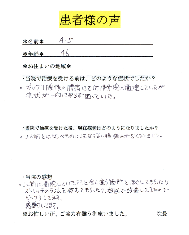 【氏名】A.S様【年齢】46歳【お住まい】
