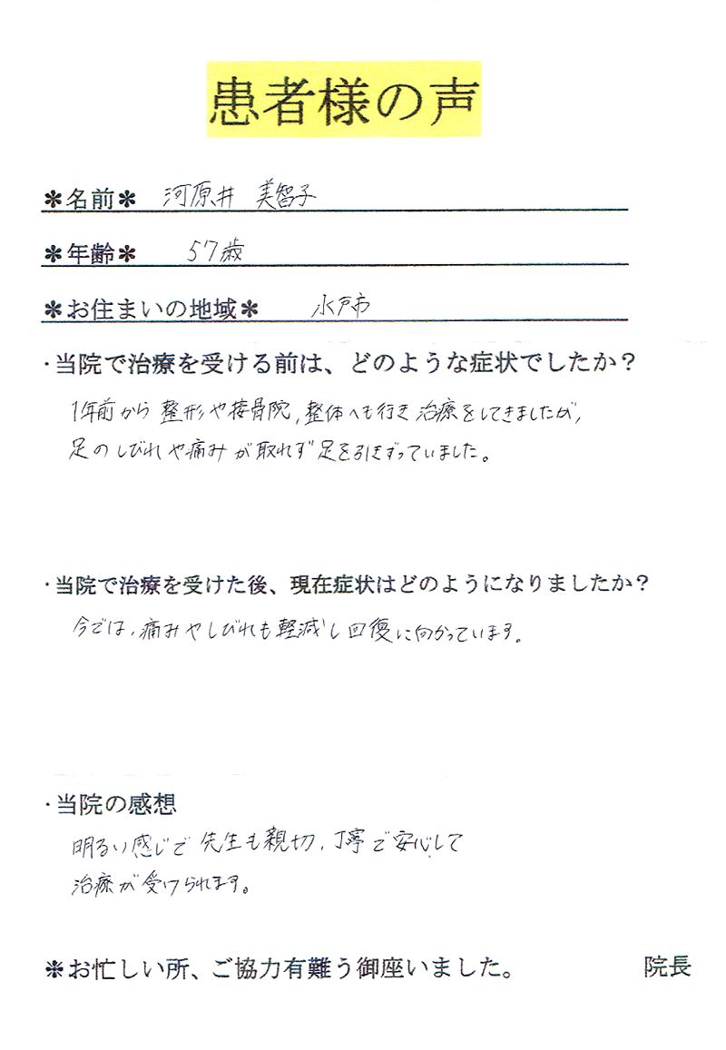 【氏名】河原井様【年齢】57歳【お住まい】水戸市