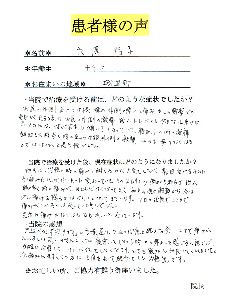 当院で腰痛・坐骨神経痛が改善された方の声
